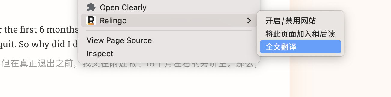2、使用右键菜单的【全文翻译】